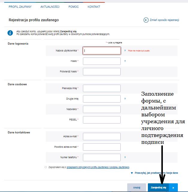 1. Регистрация личных данный на портале pz.gov.pl;