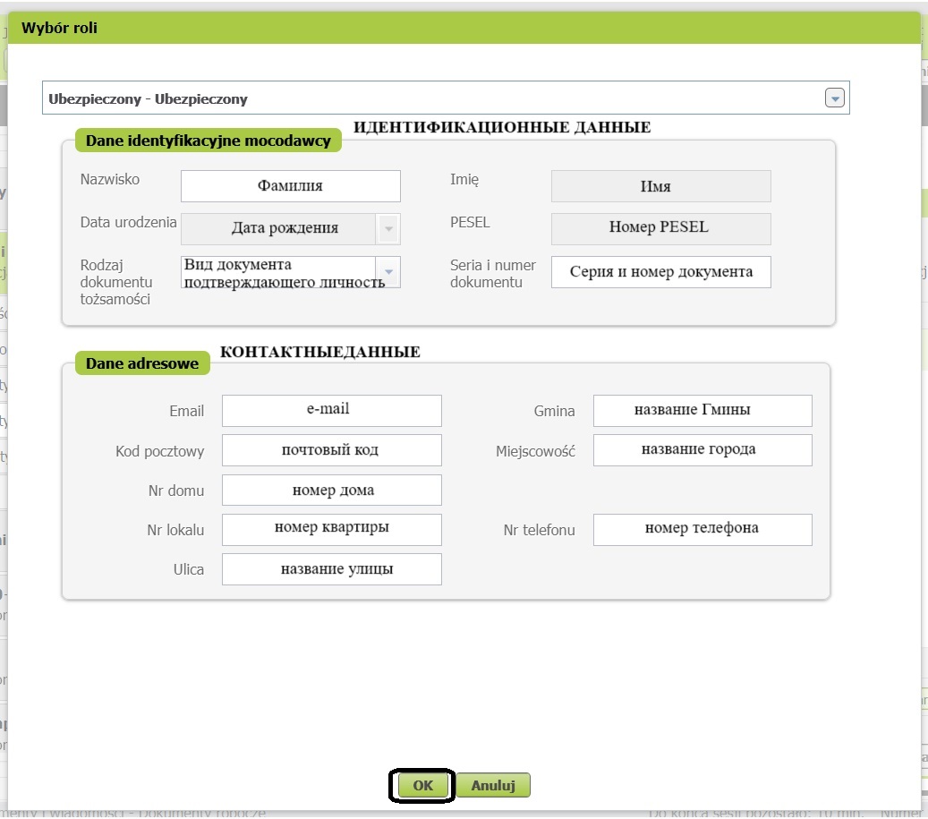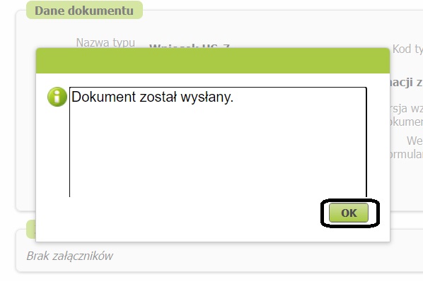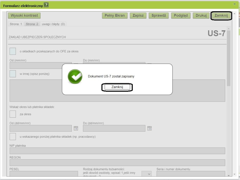 ШАГ 10. После записи документа закройте формуляр нажав кнопку «Zamknij»