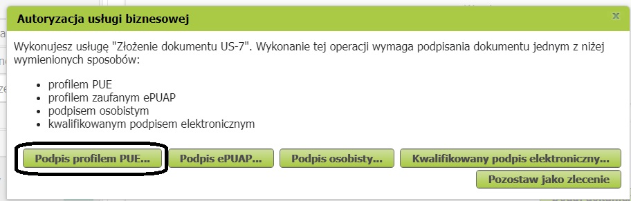 ШАГ 17. На следующем шаге Вам нужно выбрать способ подтверждения факта получения Вами справки (можно выбрать или профиль PUE или доверенный профиль (profil zaufany PUE) — выбираем «profil PUE»